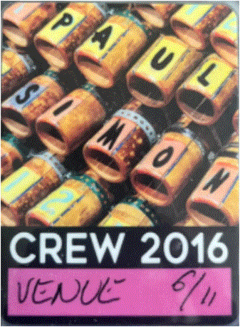 Backstage pass for a Paul Simon show performed on 06/20/2001 during his "North America 2001" tour at the desert sky Pavillon in Phoenix AZ |