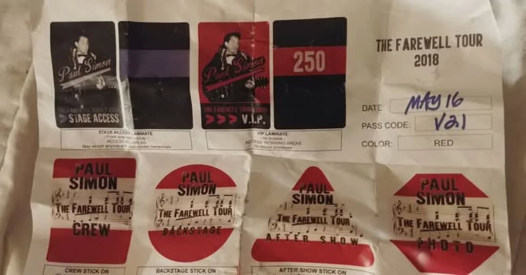 Paul Simon Sheet of 12 2016 Tour Uncut Backstage Laminate Passes |