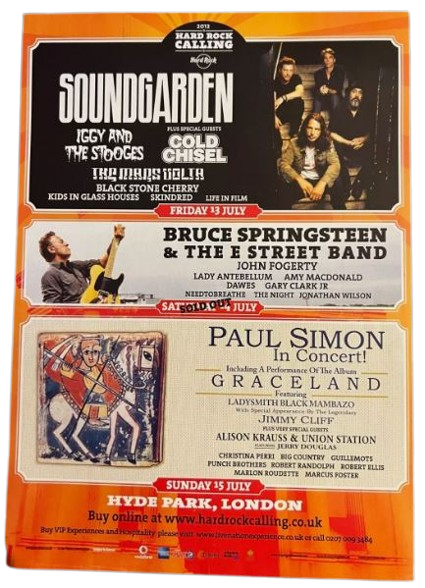 + PAUL SIMON BRUCE SPRINGSTEEN 2012 TOUR LAMINATE BACKSTAGE PASS HARD ROCK CALLING |