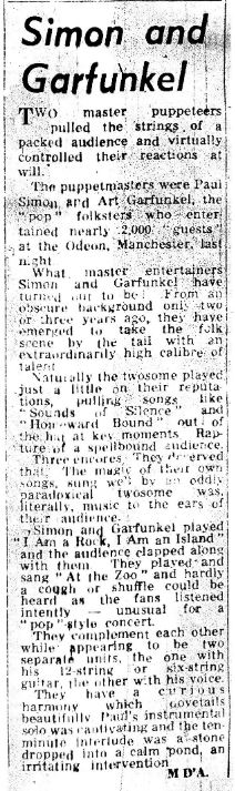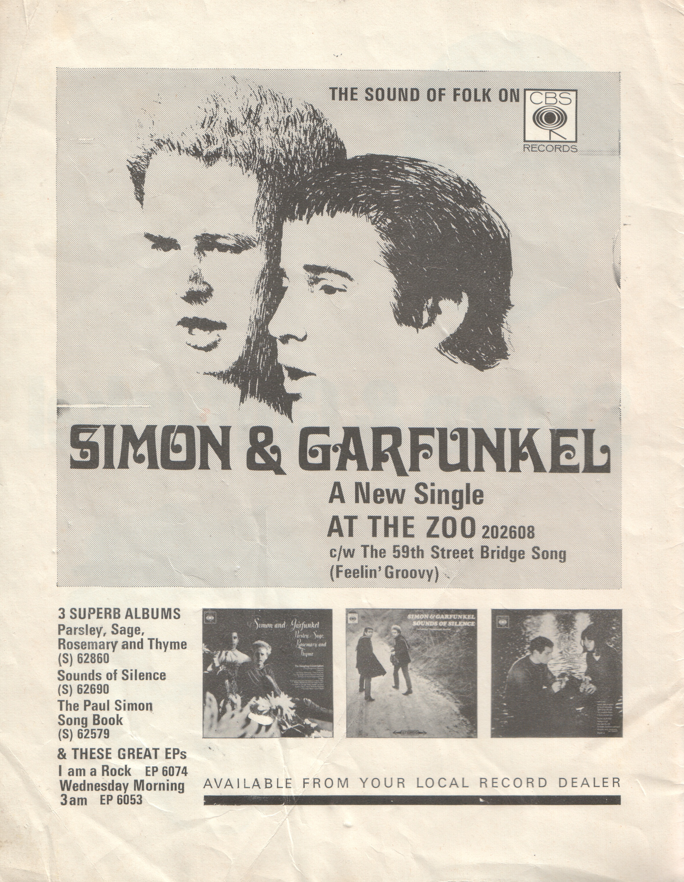 1966Tracks List Sparrow Homeward bound You don't know where your interest lies A most peculiar man Red rubber ball The dangling conversation The 59 th Street bridge song (feelin groovy ) Richard Cory Benedictus Blessed A poem on the underground wall I am a rock Anji The sound of silence For Emily whenever I may find her A church is burning Wednesday morning 3 A M