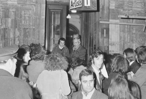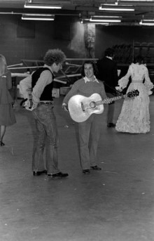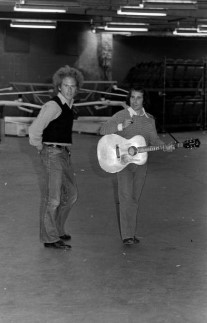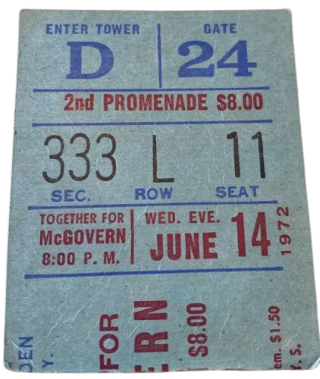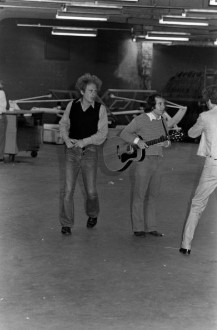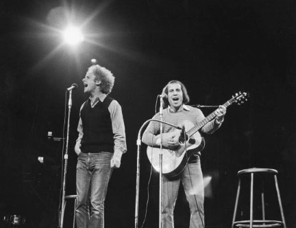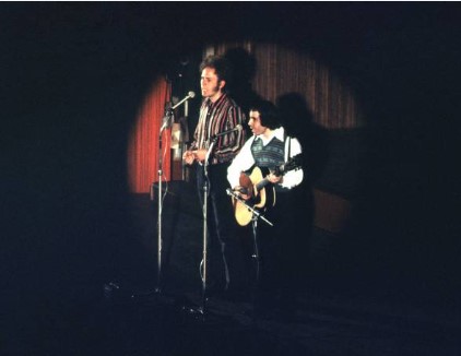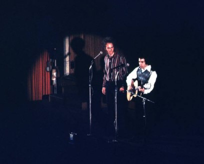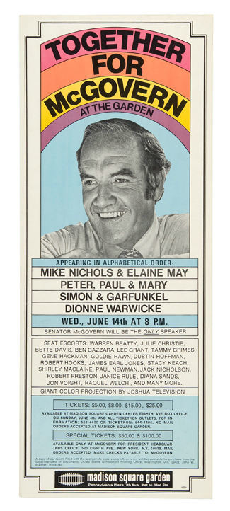 Madison Square Gardens Simon and Garfunkel perform in public together again (they have not been working as a team lately) at a Madison Square Garden concert held to raise campaign funds for Sen. George McGovern, currently front-runner in the Democratic presidential nomination sweepstakes. During the final act June 14th, Art Garfunkel (left) and Paul Simon sang "Bridge Over Troubled Waters," which reportedly is to serve as the senator's campaign song. While the entertainers played, McGovern said, "I want indeed to become a bridge over troubled waters."