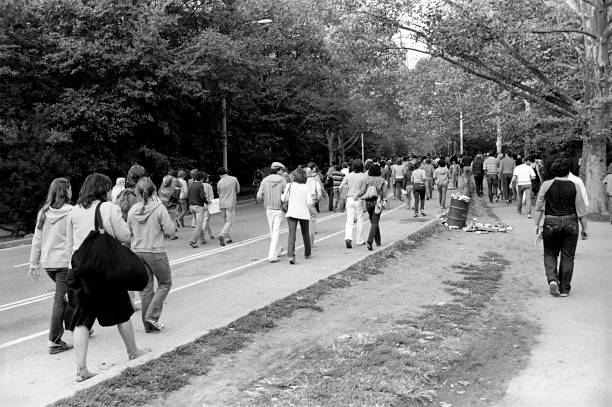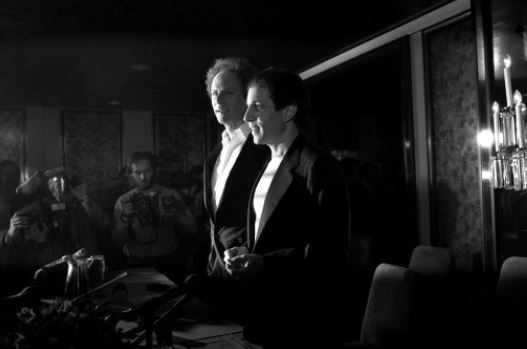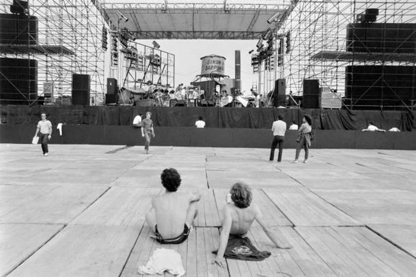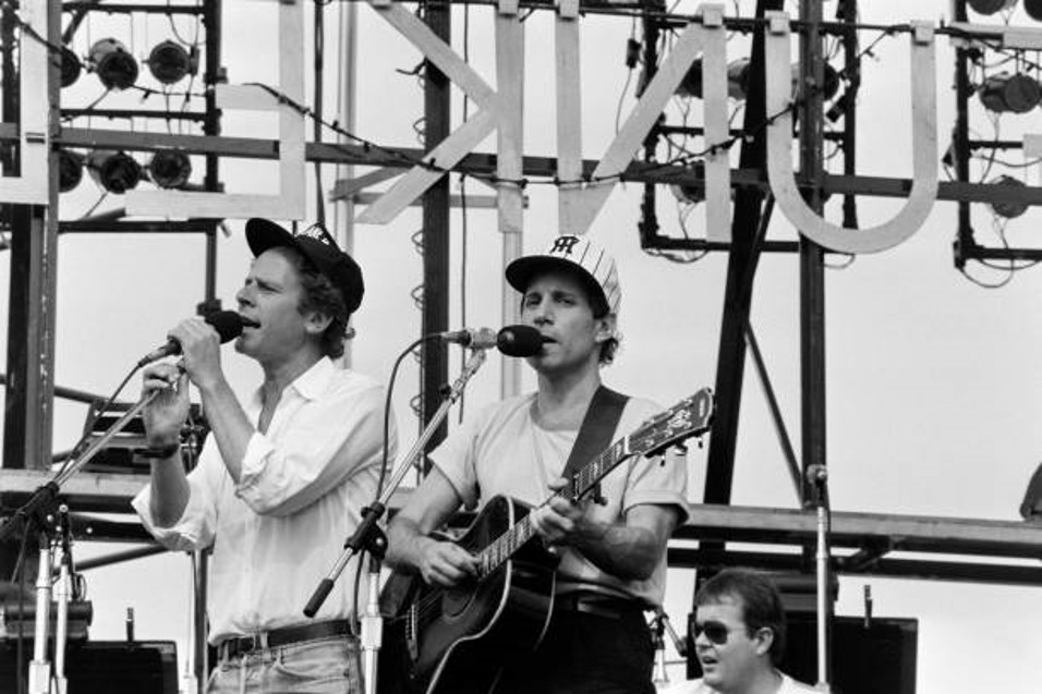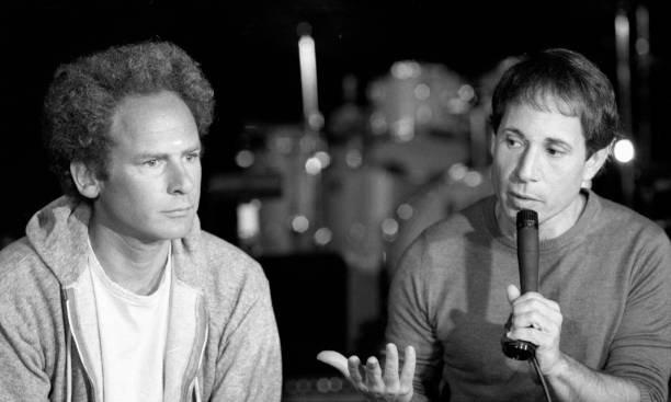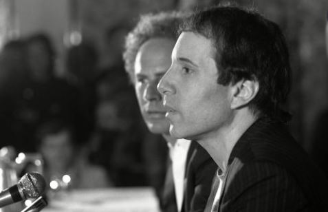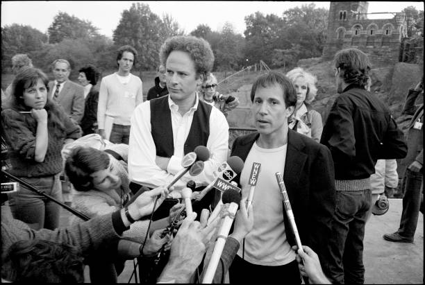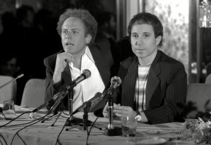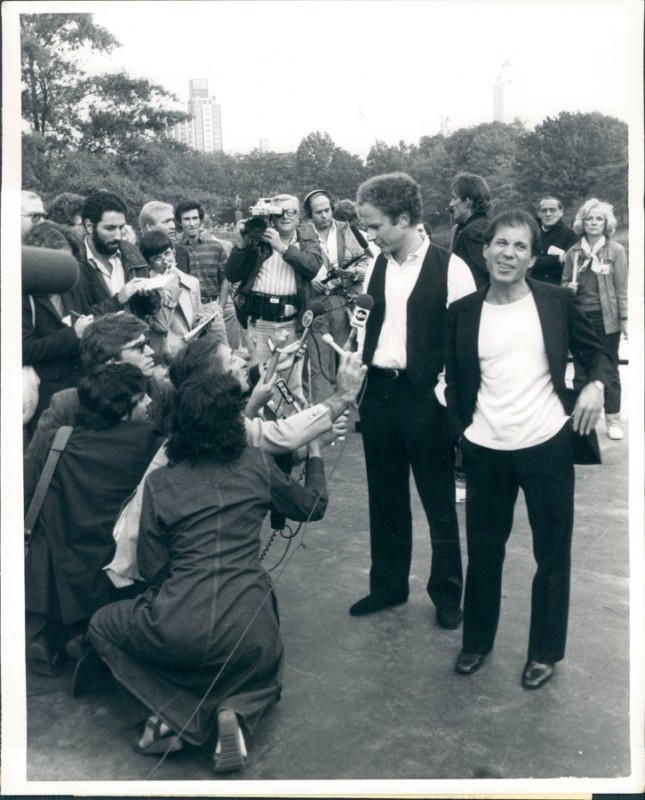 Paul Simon and Art Garfunkel at a press conference at the Palladium Concert Hall. Tomorrow, the folk-rock duo reunite for a free concert on the Great Lawn of New York's Central Park