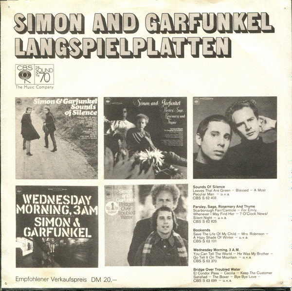 1971 Germany Single The 59th Street Bridge Song (Feelin' Groovy) / / I Am A Rock |
