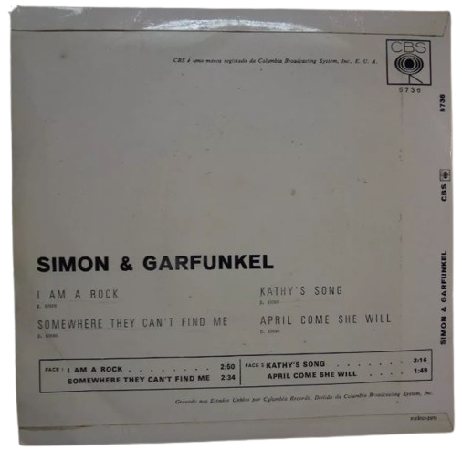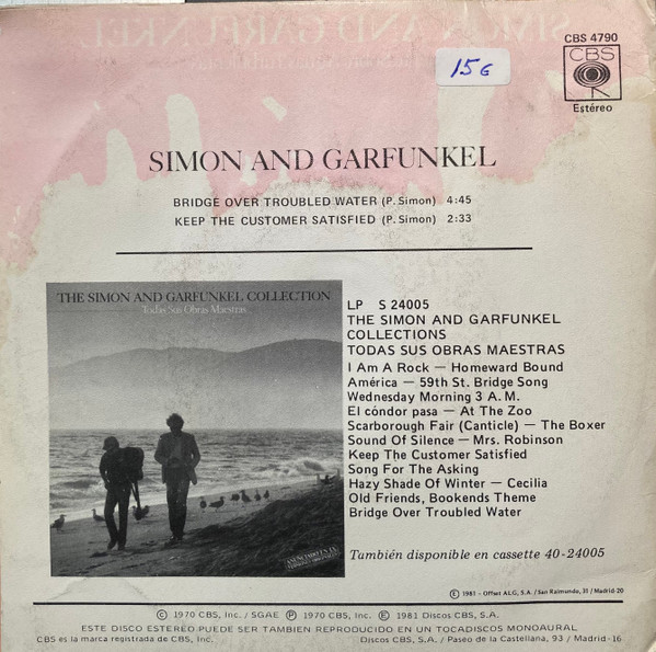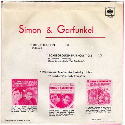 1971 Spain Single Soy Una Roca = I Am A Rock / La Canción Del Puente De La Calle 59 = The 59th Street Bridge Song |
