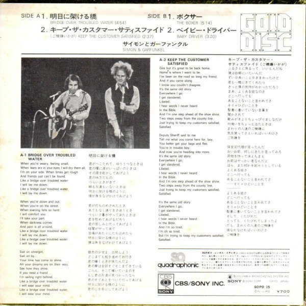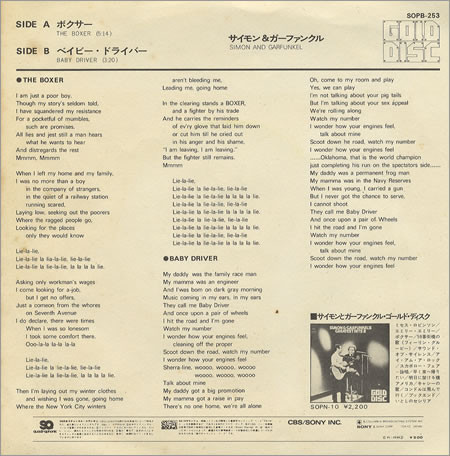 1972 Japan Single Bridge Over Troubled Water / America / El Condor Pasa / The Boxer