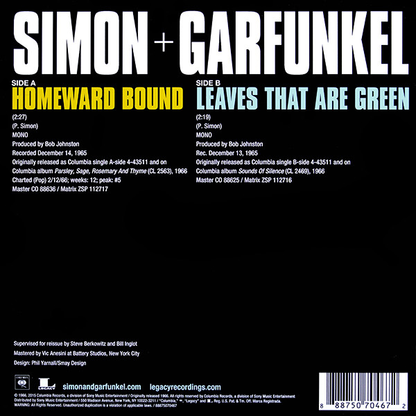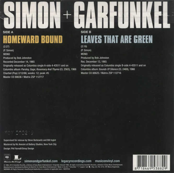 1981 UK Single Homeward Bound / 59th St. Bridge Song |
