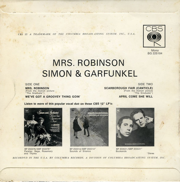 1973 UK Single Mrs Robinson / Bookends Theme |