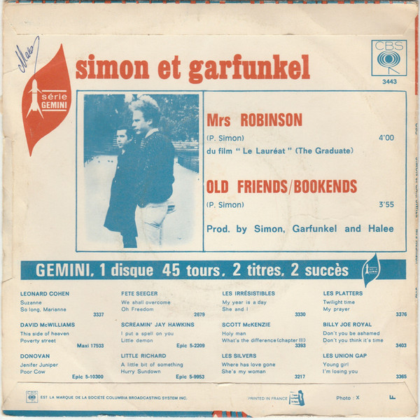 1968 Scandinavia Single Mrs. Robinson / Old Friends / Bookends |