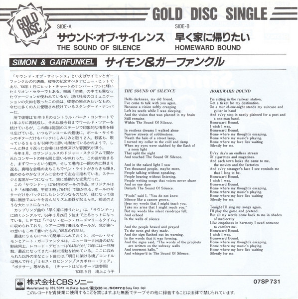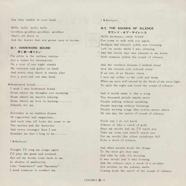 1970 The sound of silence Mrs Robinson Scarborough fair Homeward Bound Japan Single |