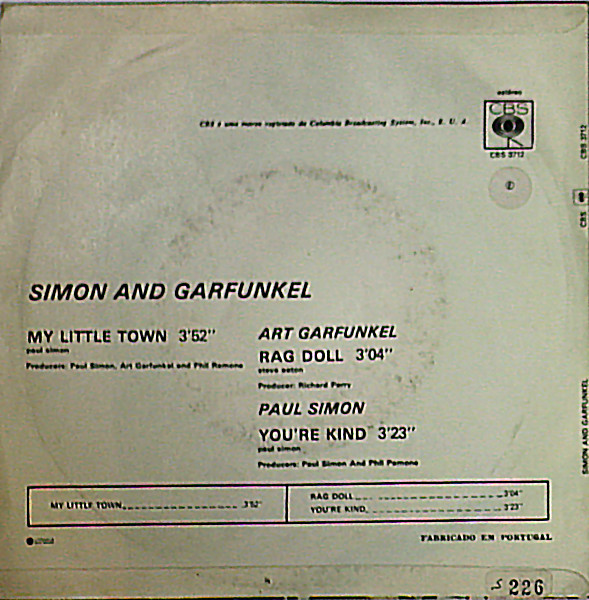 1975 Portugal Single My Little Town / Garfunkel Rag Doll / Paul Simon You're Kind |