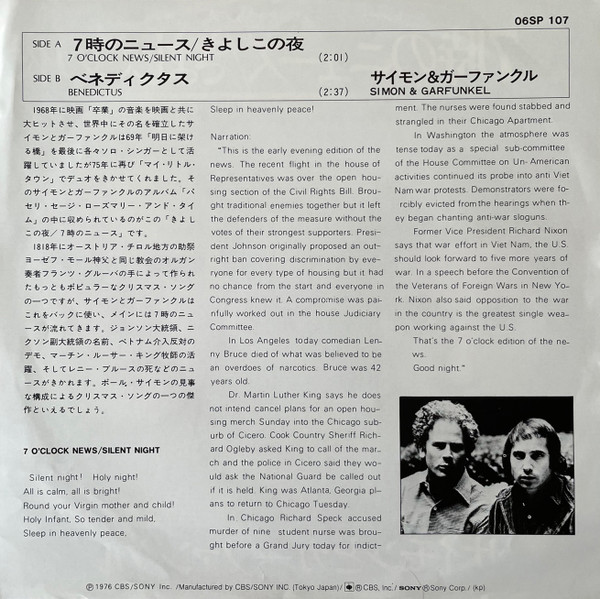 1975 Japan Single 7 O'Clock News / Silent Night / Benedictus |