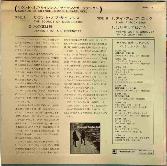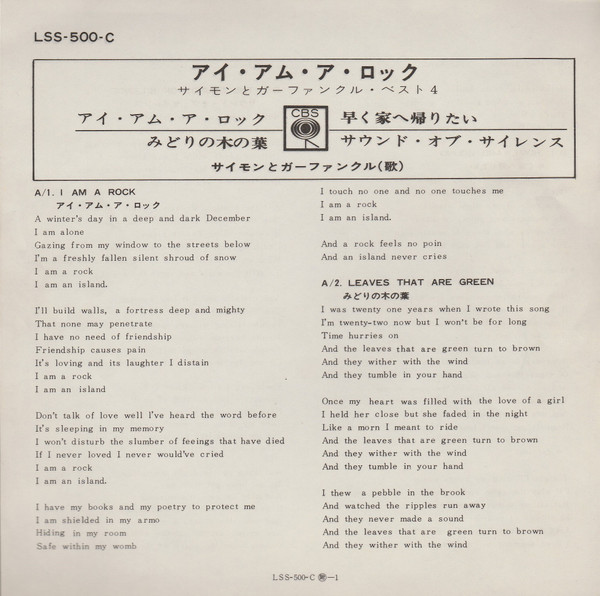 1966 Japan Single I Am A Rock / Leaves That Are Green / Homeward Bound / The Sounds Of Silence |