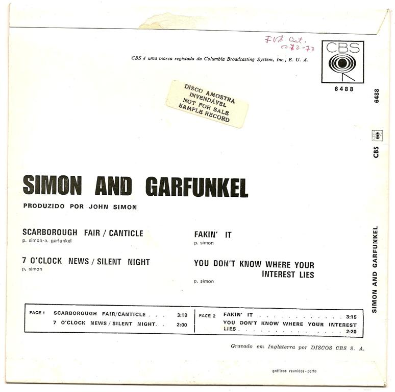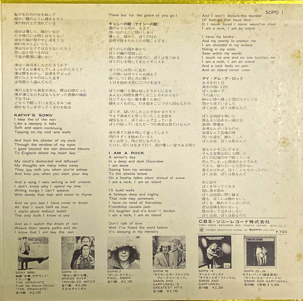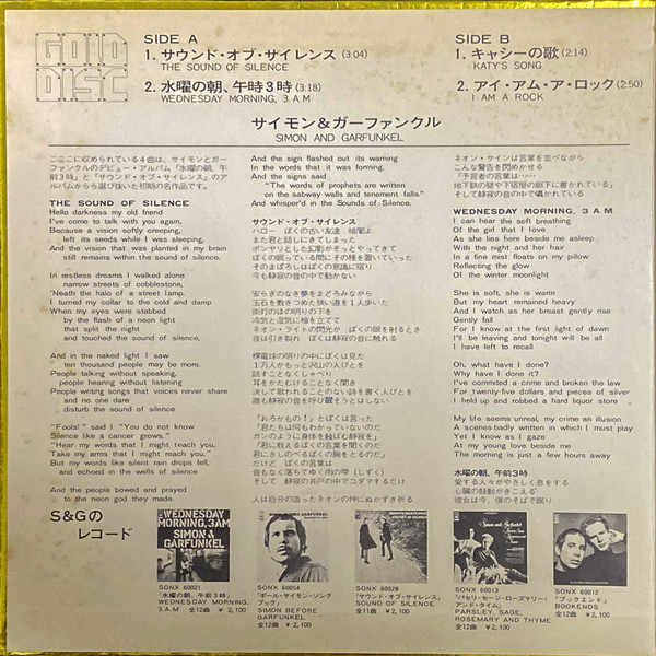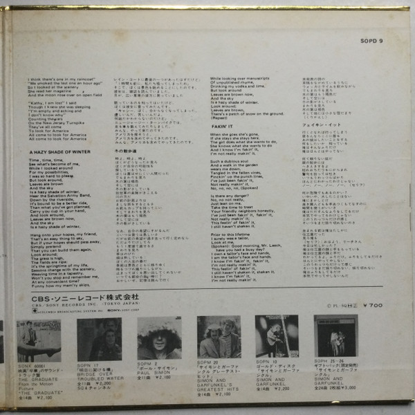 Vol 1 (1973 Japan) : The Sounds Of Silence / Kathy's Song / Wednesday Morning, 3 A.M / I Am A Rock Vol 2 (1973 Japan) : Scarborough Fair / The 59th Street Bridge Song (Feelin' Groovy) / Homeward Bound / For Emily, Whenever I May Find Her Vol 3 (1973 Japan): Mrs. Robinson / America / A Hazy Shade Of Winter / Fakin'It Vol 4 (1973 Japan) : Bridge Over Troubled Water / Keep The Customer Satisfied / The Boxer / Baby Driver Vol 5 (1973 Japan) : El Condor Pasa / Cecilia / Bye Bye Love / The Only Living Boy In New York |
