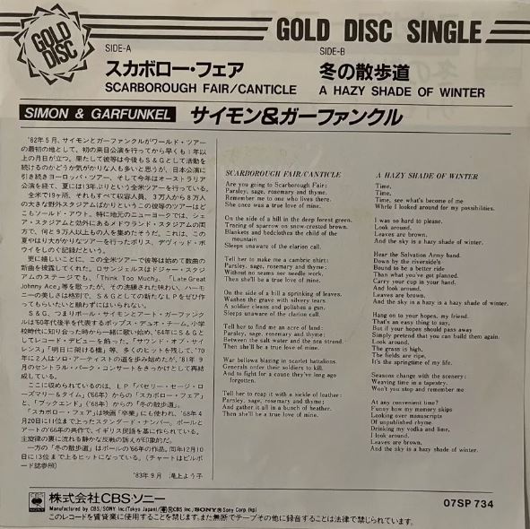 1983 pan Single Scarborough Fair/Canticle / A Hazy Shade Of Winter |
