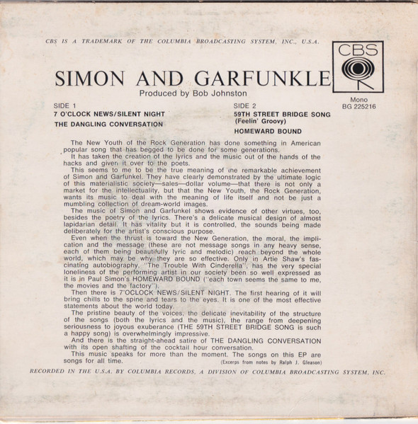 1966 Australia Single 7 O'Clock News / Silent Night / The Dangling Conversation / The 59th Street Bridge Song (Feelin' Groovy) / Homeward Bound |