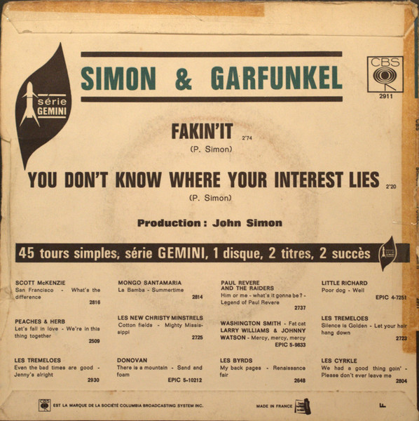 1967 French Single Fakin' It / You Don't Know Where Your Interest Lies |