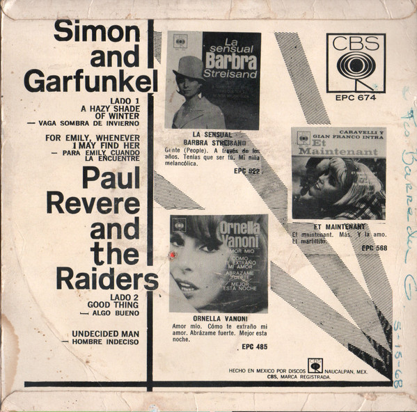 1966 Mexico Single SG A Hazy Shade Of Winter / For Emily, Whenever I May Find Her / Paul Revere And The Raiders Good Thing / Undecided Man |