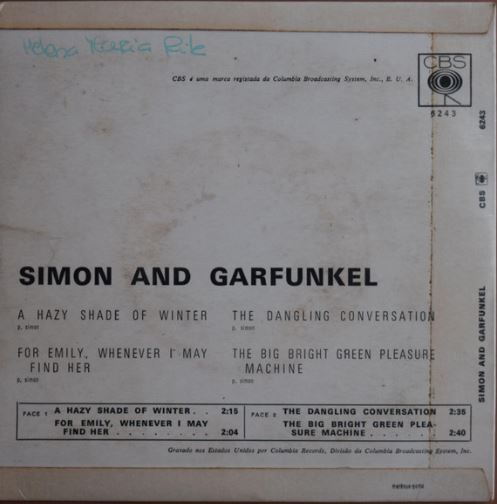 A Hazy Shade Of Winter / For Emily, Whenever I May Find Her /The Dangling Conversation / The Big Bright Green Pleasure Machine |