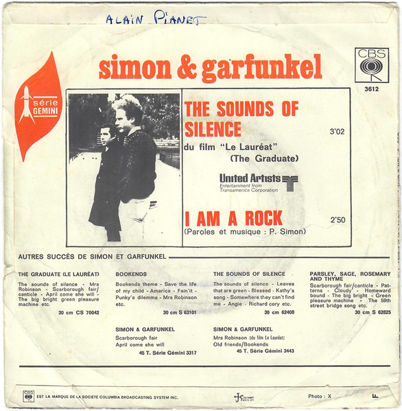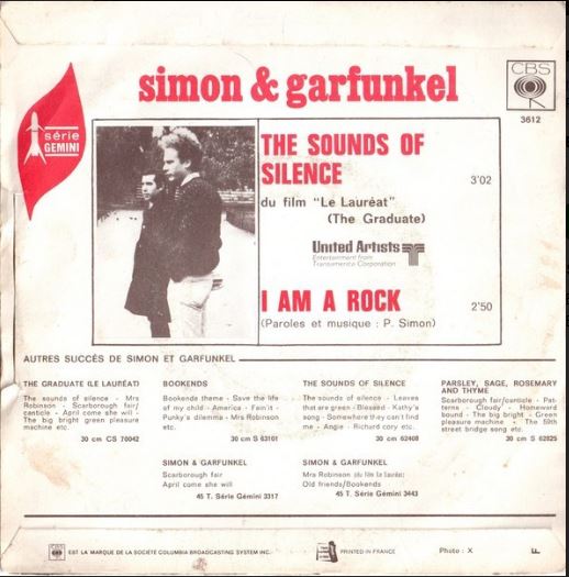 1968 French Singl The Sounds Of Silence / I Am A Rock |
