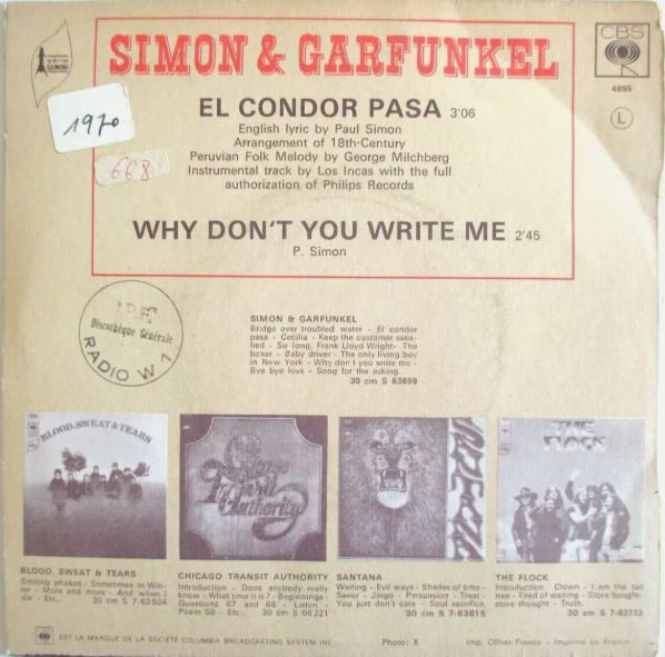 Japan Single El Condor Pasa / Cecilia / Bye Bye Love / The Only Living Boy In NY |