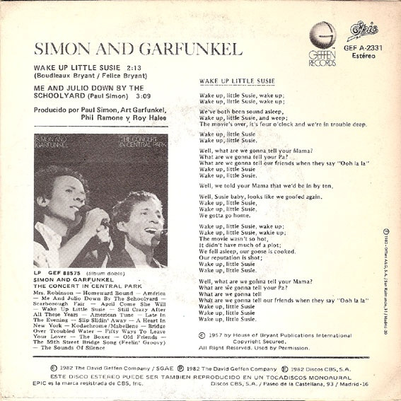 1982 Spain Single Wake Up Little Susie / Me ans Julio |