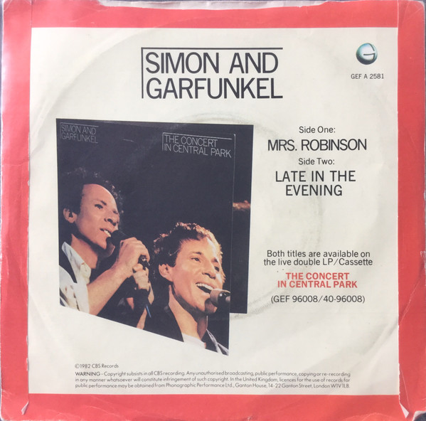 1982 UK Single Mrs Robinson / Late In The Evening |
