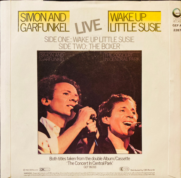 1982 UK Single Wake Up Little Susie / The Boxer |