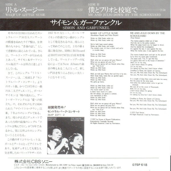 1982 Japan Single Wake Up Little Susie / Me and Julio |
