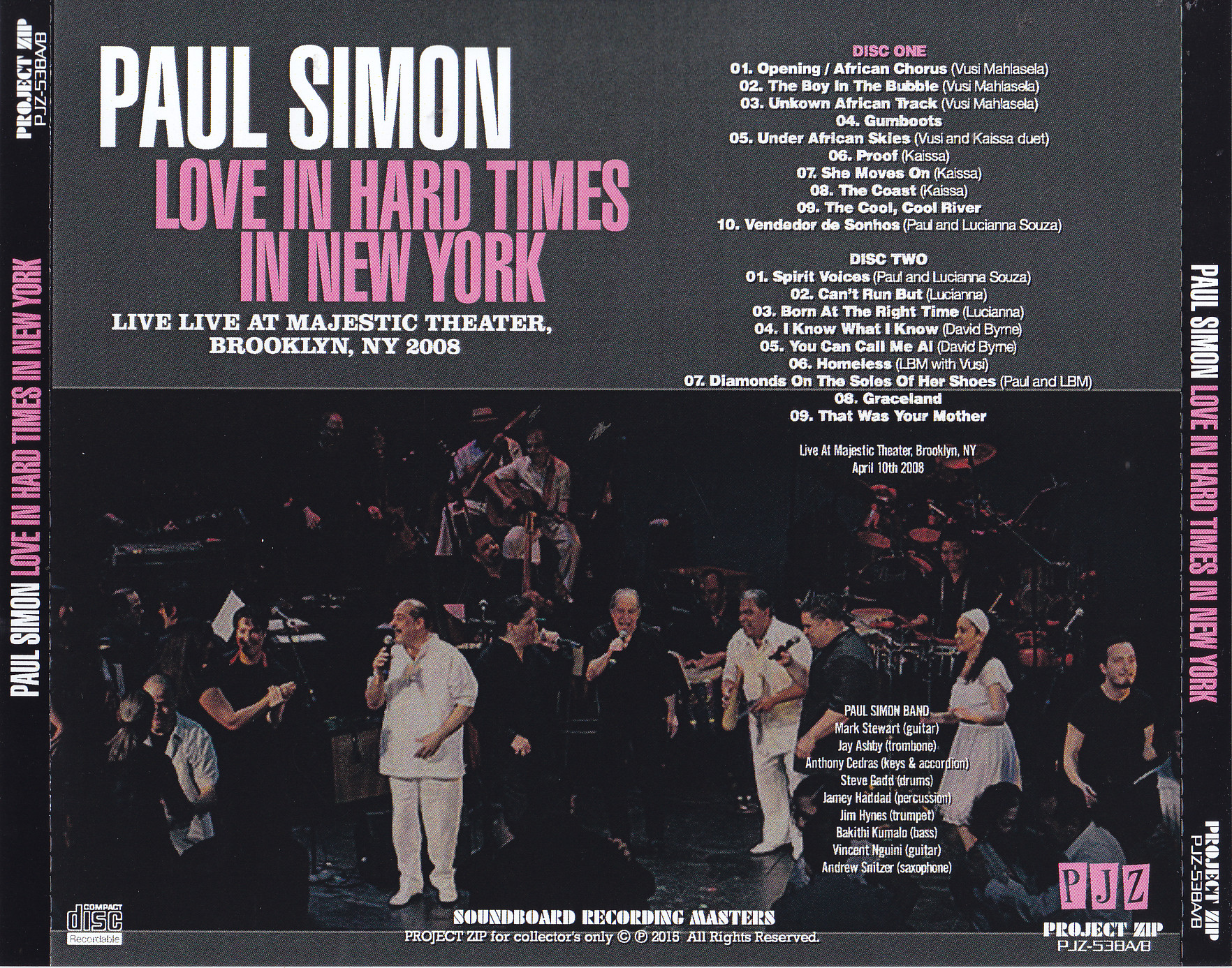 This concert was on April 10, it is the first one from the ´Under African skies´ set. Other sets have been ´Songs from the Capeman´ and ´American Tunes´