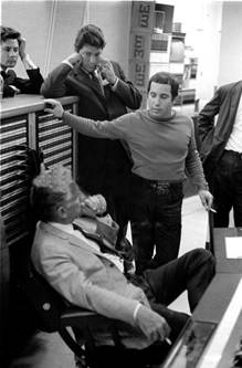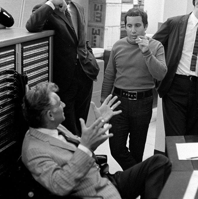 Carole King, Paul Simon and Gerry Goffin listen during a recording session in New York |