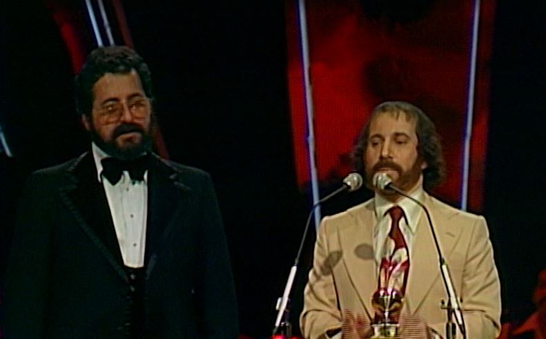 British Britannia Award at London Hilton Hotel Simon and Garfunkel singing Old Friends / Bookends Simon & Garfunkel won at the 1977 “British Record Industry Britannia Centenary Awards” (also sometimes referenced as the first edition of the BRIT Awards 1977) organised by the British Phonographic Industry (BPI). Specifically: