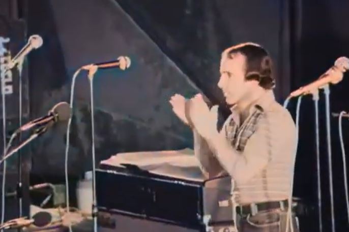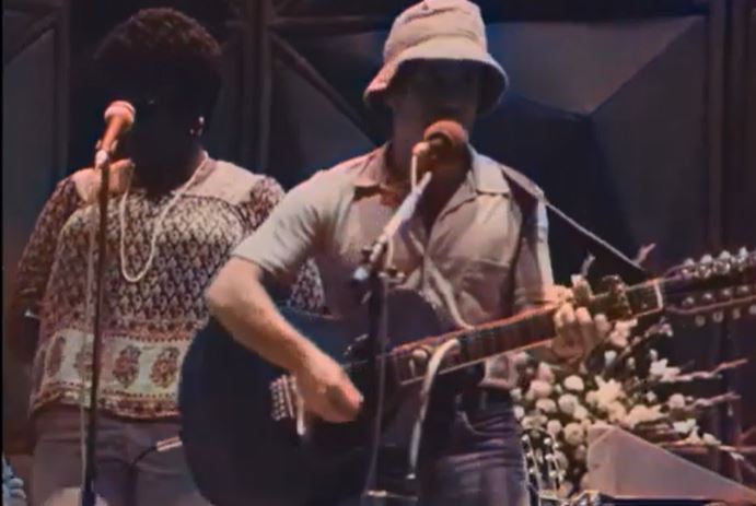 Paul Simon plays guitar on stage during the 1977 'New Spirit' Inaugural Concert at the Kennedy Center, Washington DC, January 19, 1977. The event, a variety show featuing a number of performers and speakers, celebrated Jimmy Carter's inaguration and was broadcast on the CBS television network. |