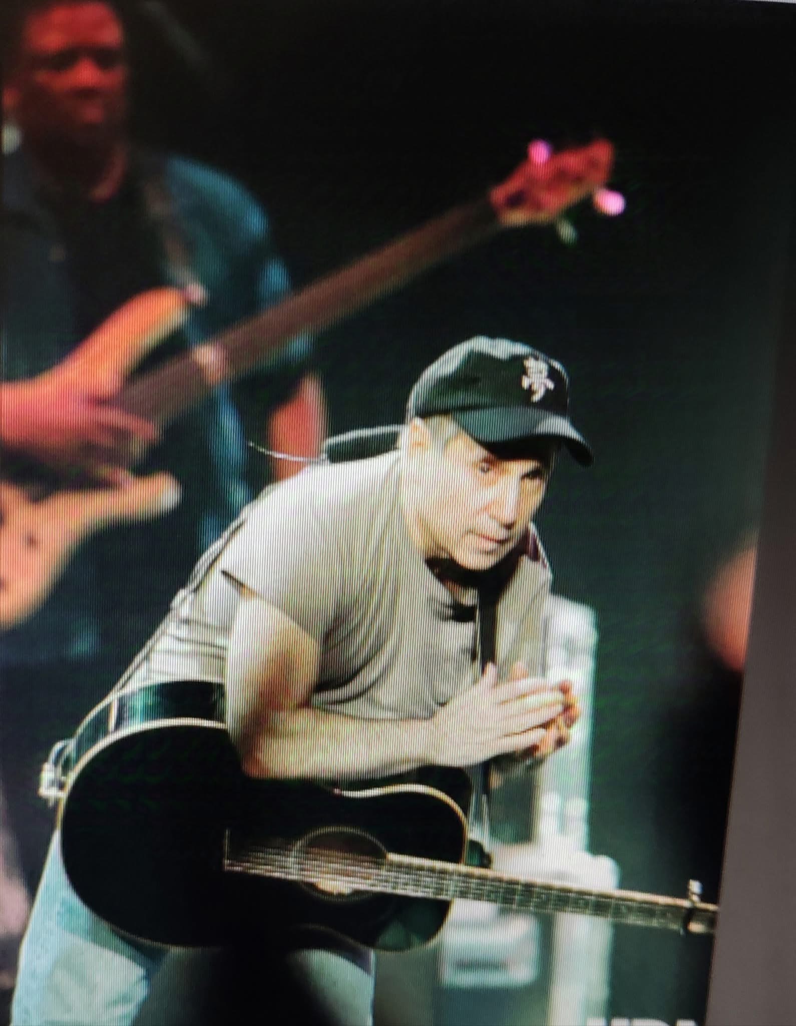 Paul Simon performs "Bridge Over Troubled Water" on the live broadcast of "America: A Tribute To Heroes" in New York, NY, September 21. To make a donation go to www.tributetoheroes.org. All funds raised from this program will go to the September 11 Fund, administered by the United Way.