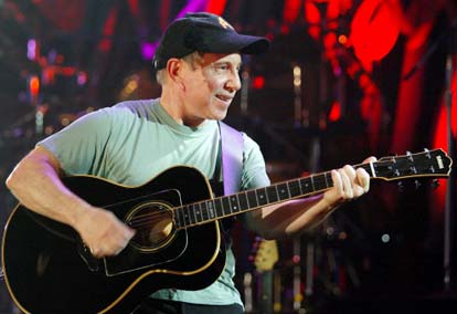 Paul Simon performs during the "From the Big Apple to the BiUNITED STATES - CIRCA 2002: Paul Simon performs during the "From the Big Apple to the Big Easy" benefit concert at Madison Square Garden. Proceeds from the concert will be donated to Hurricane Katrina relief. |
