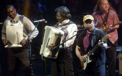 Musician Paul Simon performs during Jazz at Lincoln Center's Higher Ground Hurricane Relief Benefit Concert, Saturday, Sept. 17, 2005, in New York City. All proceeds from the concert which was broadcast on PBS, will be donated to Hurricane Katrina relief efforts |
