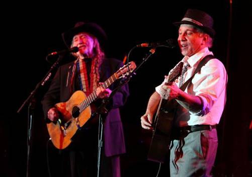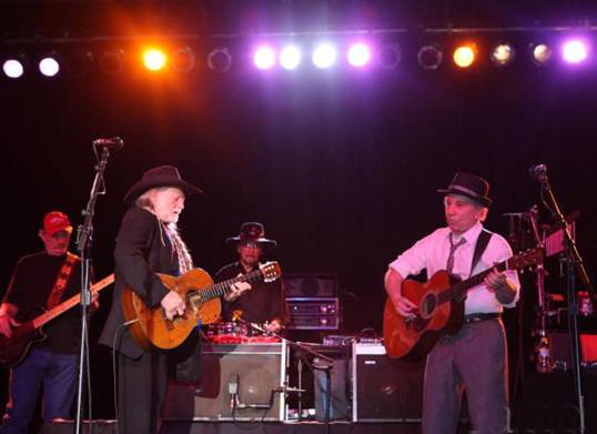 At the Children's Health Fund benefit on May 27, 2009, in New York City, Willie Nelson and Paul Simon performed together at the Sheraton New York Hotel & Towers.