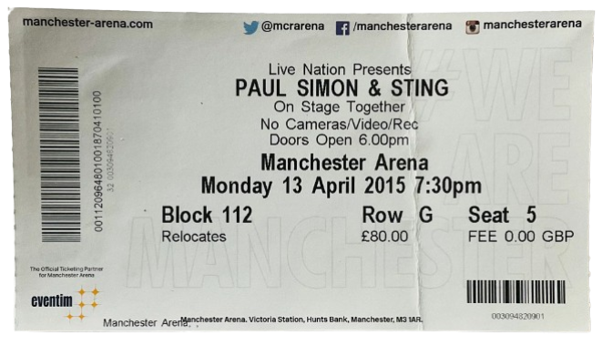 the Paul Simon + Sting concert planned at O2 Arena in Prague, Czech Republic, in March 2015 was cancelled.