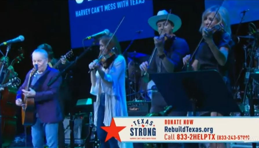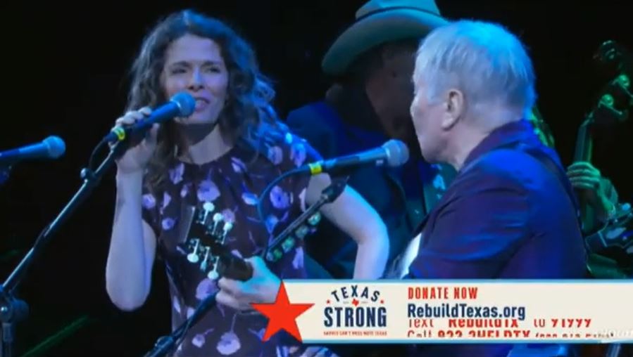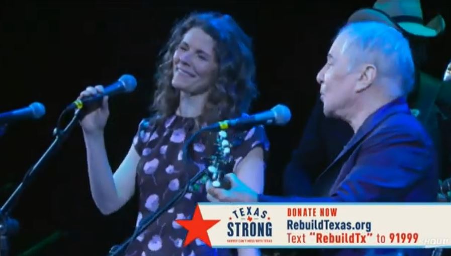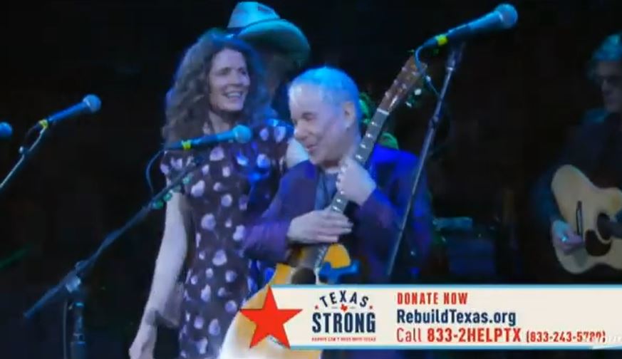 Paul Simon and Edie Brickell perform in concert during the "Texas Strong: Hurricane Harvey Can't Mess With Texas" benefit at The Frank Erwin Center