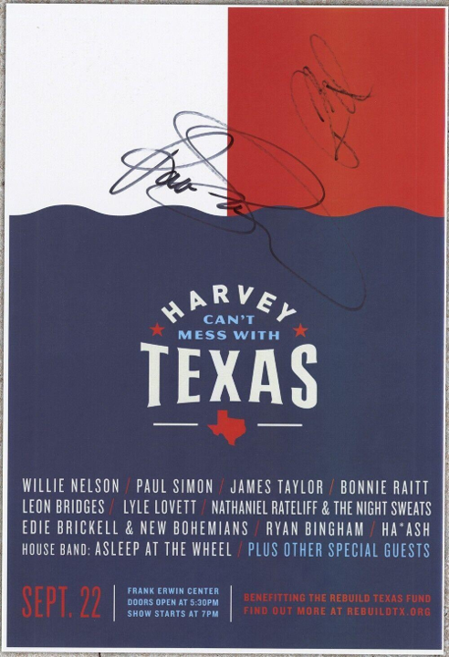 Paul Simon and Edie Brickell perform in concert during the "Texas Strong: Hurricane Harvey Can't Mess With Texas" benefit at The Frank Erwin Center |