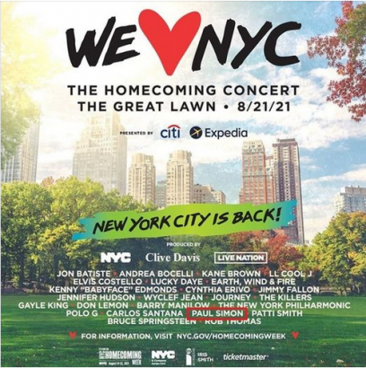he We Love NYC: The Homecoming Concert, scheduled for August 21, 2021 at Central Park’s Great Lawn in New York City, was interrupted and ultimately canceled due to severe weather conditions (lightning and thunderstorms related to Hurricane Henri).