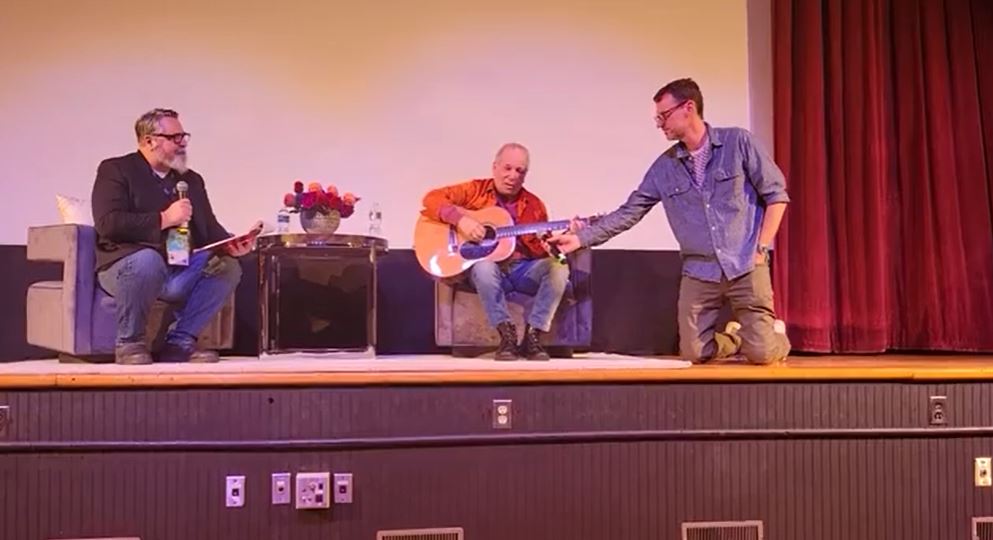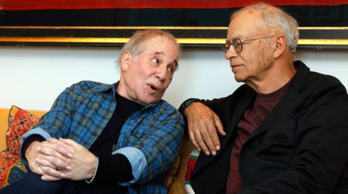 Paul Simon and Alex Gibney speak onstage at the "In Restless Dreams |