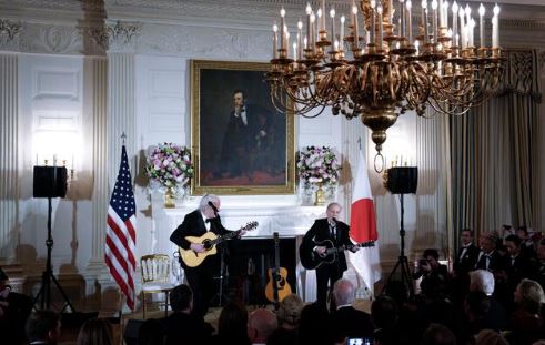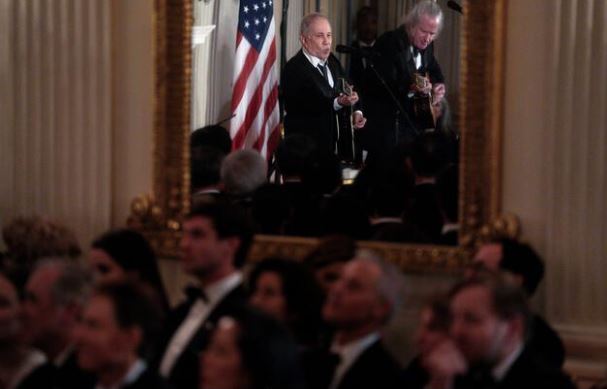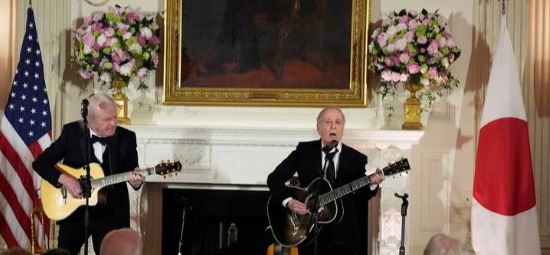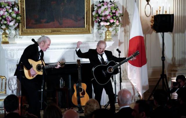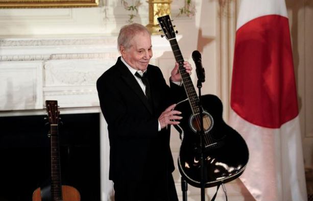 White House Paul Simon performed, together with Mark Stewart, at the White House Dinner Party . Both the Japanes prime-minister, who was visiting the White House, and Mrs Biden are big fans of Paul Simon. Paul Singing Graceland |