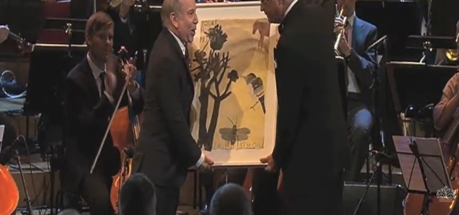 Paul Simon begins his speech with humility and gentle humor, expressing how deeply honored—and somewhat astonished—he is to receive such a prestigious award. He emphasizes that music is never created in isolation. He pays tribute to his musical influences, particularly American traditions such as folk, gospel, and rhythm & blues, as well as global musical cultures, especially African and Latin music, which have strongly shaped his work. Simon highlights the importance of collaboration, explaining that many of his most meaningful works emerged from encounters with other musicians, cultures, and ideas. He describes music as a universal language that transcends borders, politics, and cultural differences. He also expresses sincere gratitude to the audience, noting that songs truly come alive only when they are heard, shared, and embraced by listeners. He concludes on a thoughtful and modest note, reflecting on music as both a mystery and a gift, and describes himself simply as a fortunate craftsman who has been able to devote his life to making music.