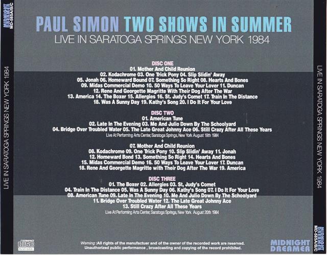 Live In Saratoga Springs New York August 19th 1984. & 20th August 1984