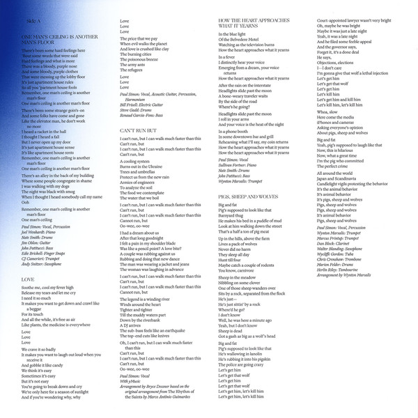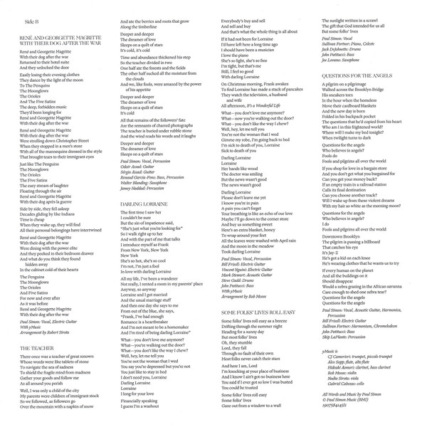 Paul Simon: Vocal, Acoustic Guitar, Percussion, Harmonium