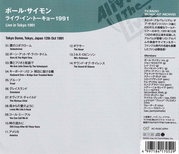 Recorded at Tokyo Dome Japan on Oct 12,1991