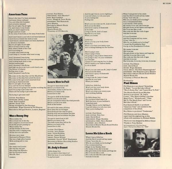 On the Billboard 200 chart it reached number 2 (blocked by George Harrison's Living in the Material World), while in the United Kingdom it peaked at number 4. The album contains songs covering several styles and genres, such as gospel ("Loves Me Like a Rock") and dixieland ("Take Me to the Mardi Gras"). The album featured two U.S. #2 hits: "Love Me Like a Rock" and "Kodachrome". Simon received a Grammy nomination for this album in the category Best Male Pop Vocal performance in 1974.