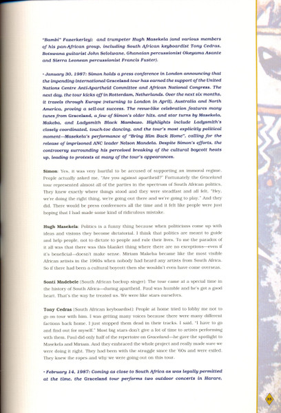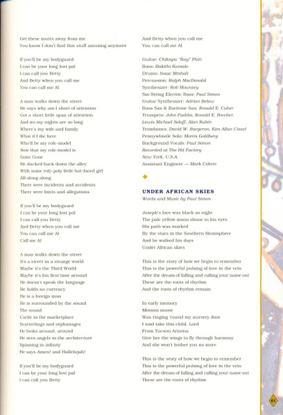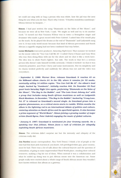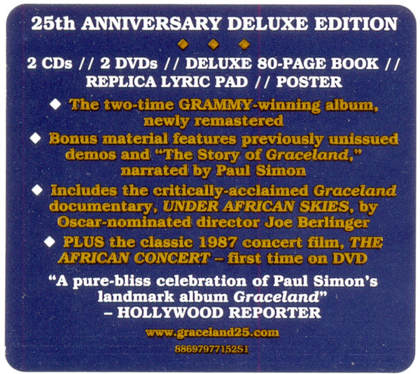 Under African Skies (Documentary) and extended interviews three original music videos and the iconic “Saturday Night Live” performance of “Diamonds on the Soles of Her Shoes”