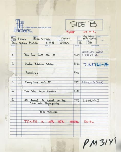 "It was not a pleasant deal for us. I mean he [Simon] quite literally and in no way do I exaggerate when I say he stole the songs from us... We go into the studio, and he had quite literally nothing. I mean, he had no ideas, no concepts, and said, "Well, let's just jam." ...Paul goes, "Hey, what's that?" We start playing what we have of it, and it is exactly what you hear on the record. So we're like, "Oh, ok. We'll share this song." ...A few months later, the record comes out and says "Words and Music by Paul Simon." We were like, "What the fuck is this?" We tried calling him, and we can't find him. Weeks go by and our managers can't find him. We finally track him down and ask him about our song, and he goes, "Sue me. See what happens."[2]