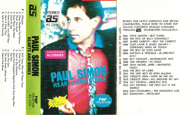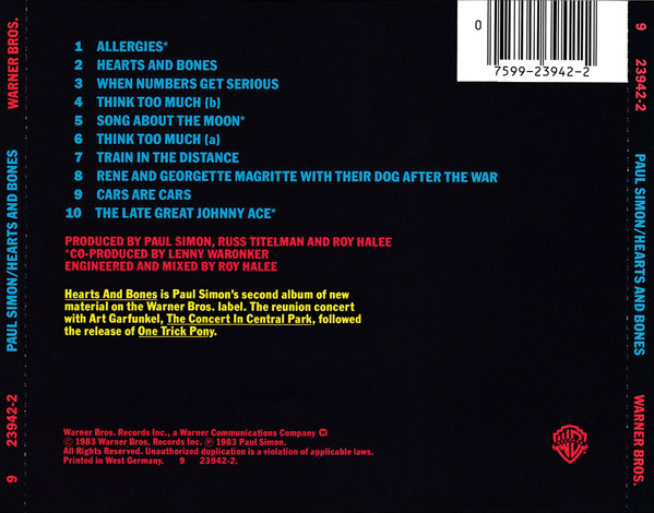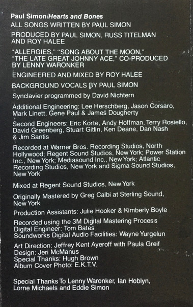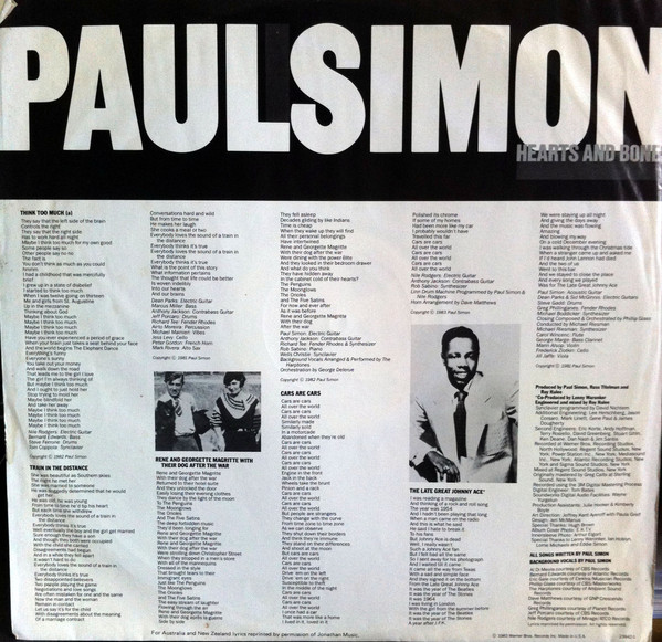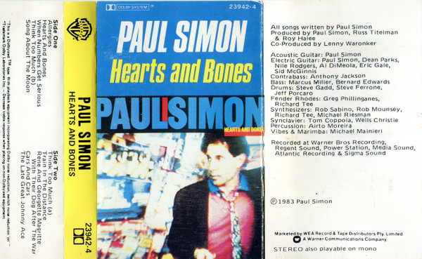 Own this very rare Limited Edition pressing of Paul Simon's LP, "Hearts and Bones" (1983, 1-23942, Warner Brothers Records). This LP is on high-quality Quiex II Vinyl, which provides a superior listening experience. The cover has a Promo gold stamp, as well as a Quiex II Limited Edition sticker. The "1" on the record number indicates a First Pressing.